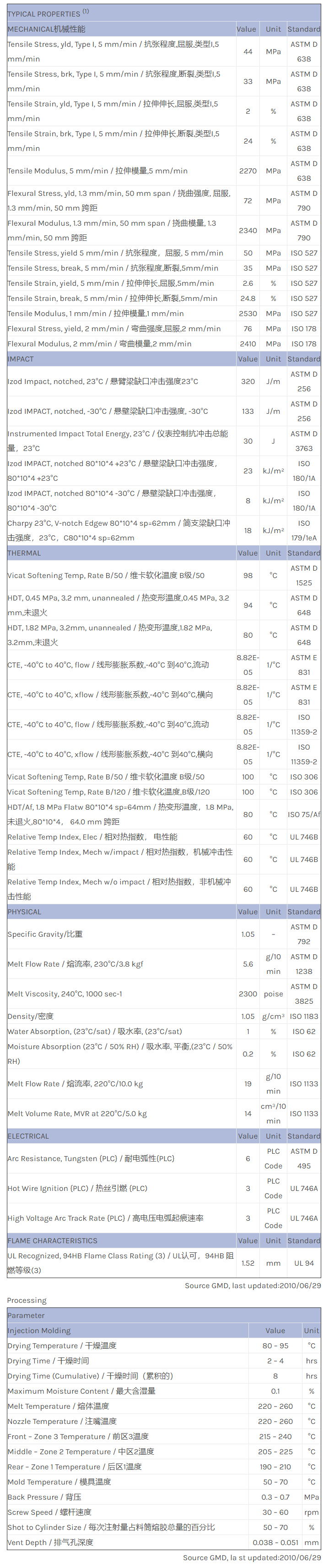 应用范围: 产品描述 LNP COLORCOMP A1000H物性表 LNP COLORCOMP A1000H是一种丙烯腈丁二烯苯乙烯(ABS)产品,可以通过注射成型进行加工。 典型应用领域为:医疗/保健。 主要特性为:阻燃/额定火焰。