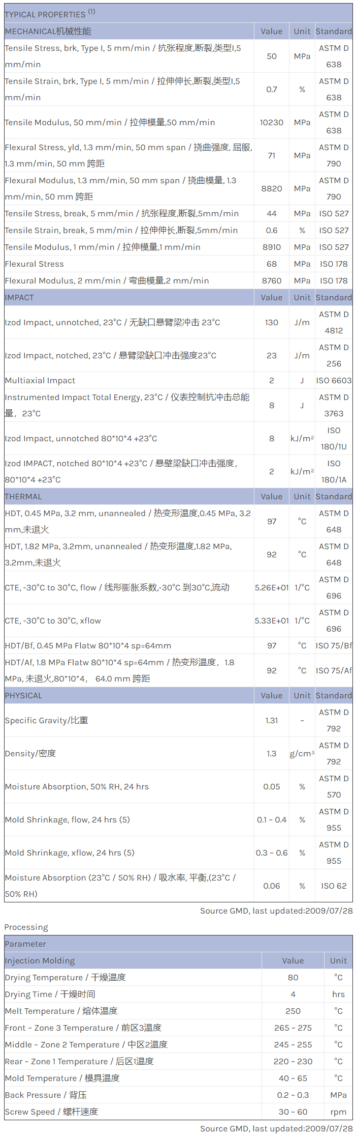 应用范围: 产品描述 LNP THERMOTUF CF007IXP物性表 LNP* Thermotuf* CF007IXP is a compound based on Polystyrene containing glass fiber. Characteristics of this grade are: High Impact.
