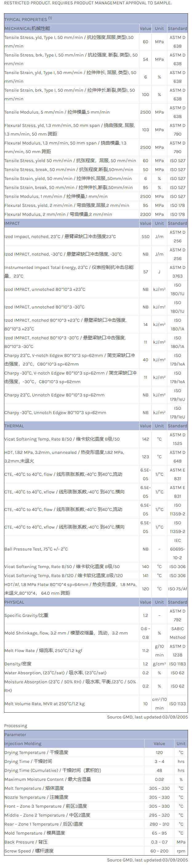 应用范围: 产品描述 LEXAN PC SOQ1022物性表 Optical quality, high purity, high flow PC for optical media applications. THIS IS A RESTRICTED PRODUCT. REQUIRES PRODUCT MANAGEMENT APPROVAL TO SAMPLE.