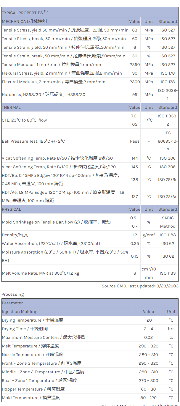 应用范围: 产品描述 LEXAN PC FXA103物性表 FXA103 is part of our VisualFX Portfolio. A transparent/translucent high viscosity grade for special effects colors with a angular metamerism appearance. Color package may