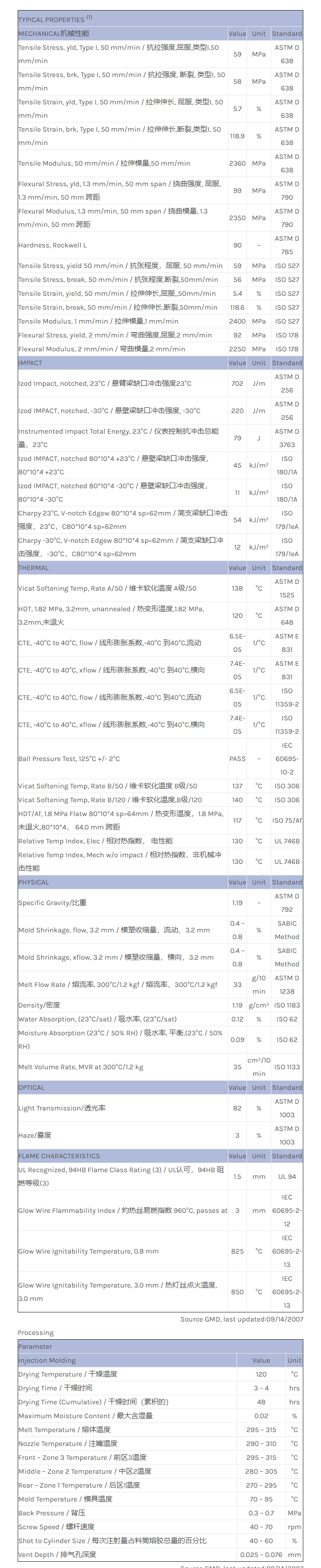 LEXAN PC EXRL0459物性表