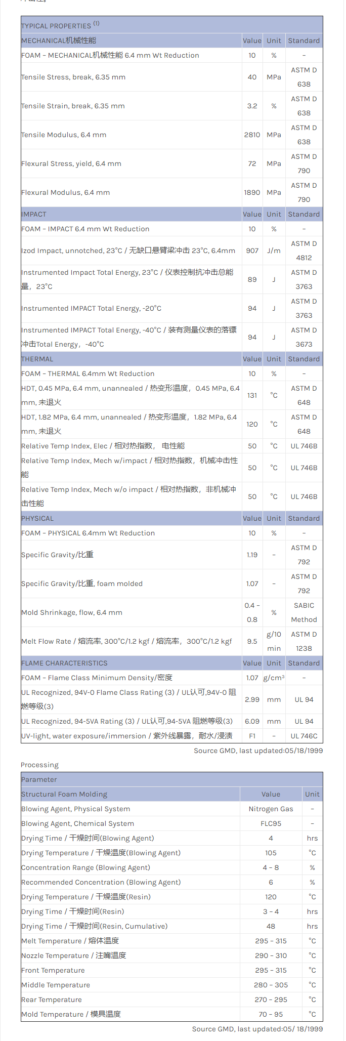 应用范围: 产品描述 LEXAN PC FL3000物性表 结构泡沫塑料:壁厚0.250″时,10%减重特性。符合ECO规范。冲击改进PC,优异的低温抗冲击性。
