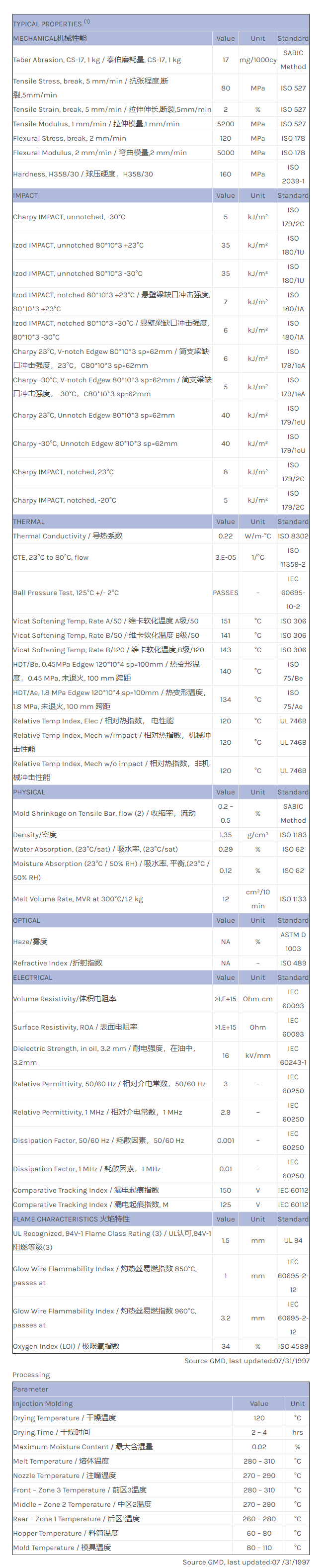 LEXAN PC 1278R物性表
