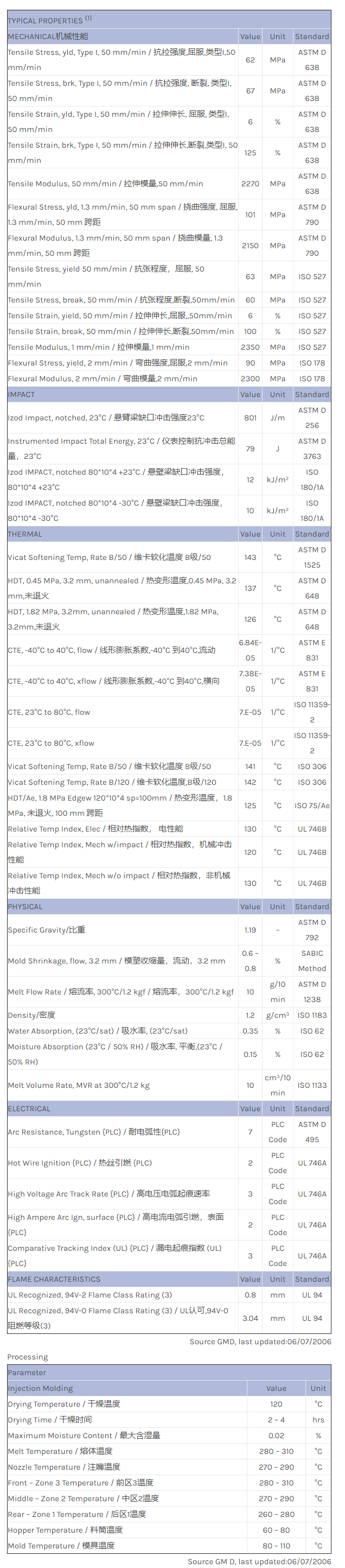 应用范围: 产品描述 LEXAN PC EXRL0280物性表 Lexan* EXRL0280 Polycarbonate (PC) resin is a non-filled, injection moldable grade. This halogen-free flame retardant PC has an UL-94 V0 rating and Melt Flow Rate / 熔流率 (