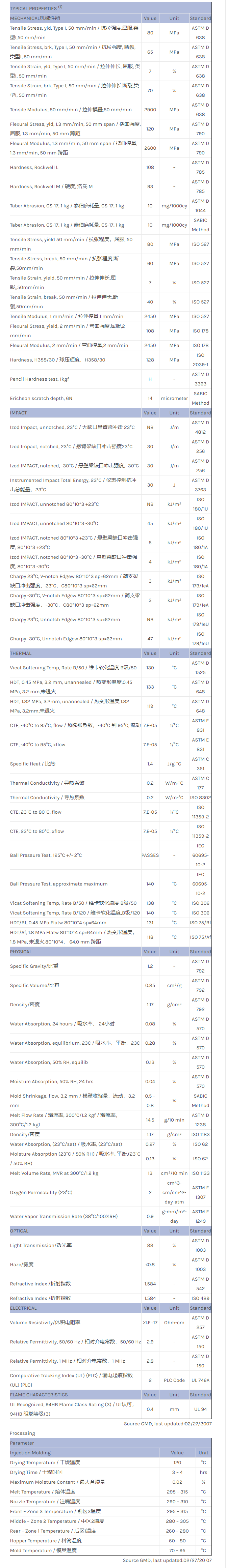 LEXAN PC DMX2415物性表