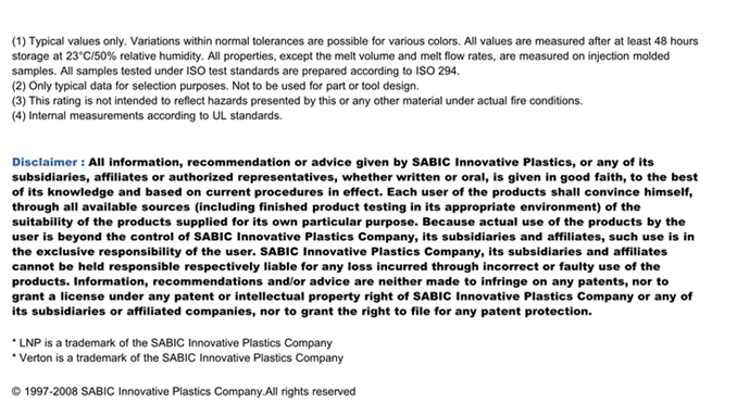 应用范围:产品描述LNP VERTON MV007U物性表LNP* VERTON* MV007U is a compound based on PP resin containing Long Glass Fiber. Added features include; Chemically Coupled, Heat Stabilized, UV Stabilized.