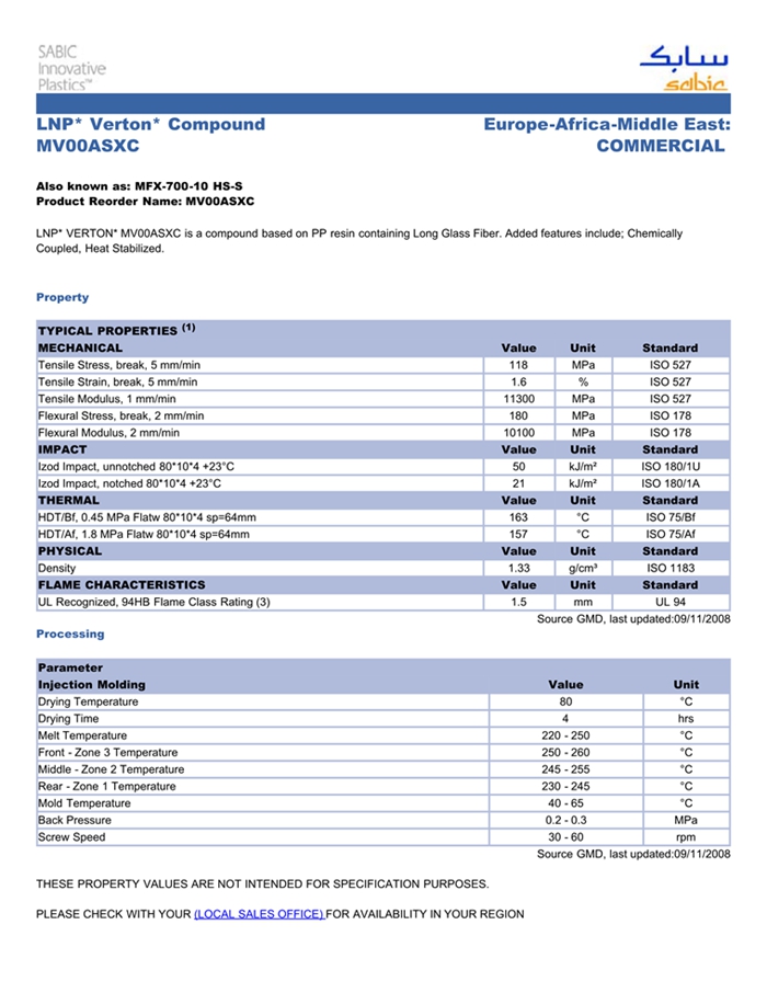 惠州LNP VERTON MV00ASXC物性表