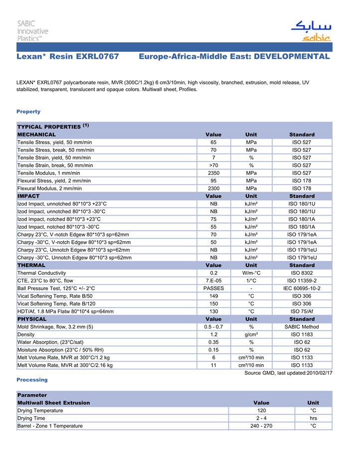 相关标签:Lexan PC 挤出,LEXAN PC EXRL0767,