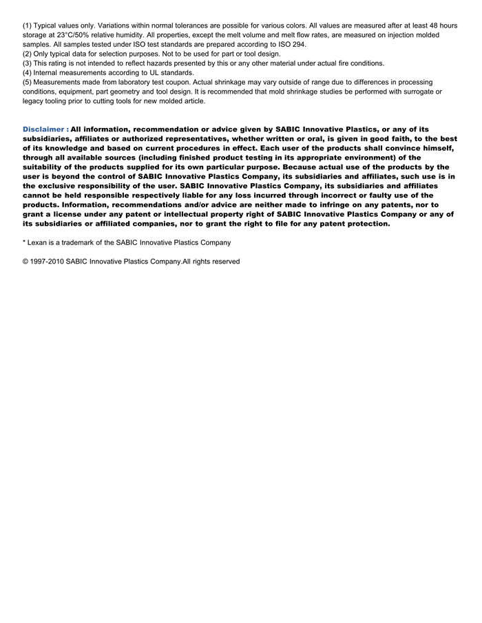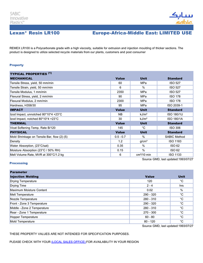LEXAN PC LR100物性表