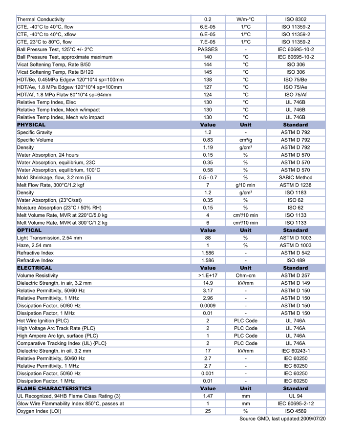 Lexan PC ML104R物性表
