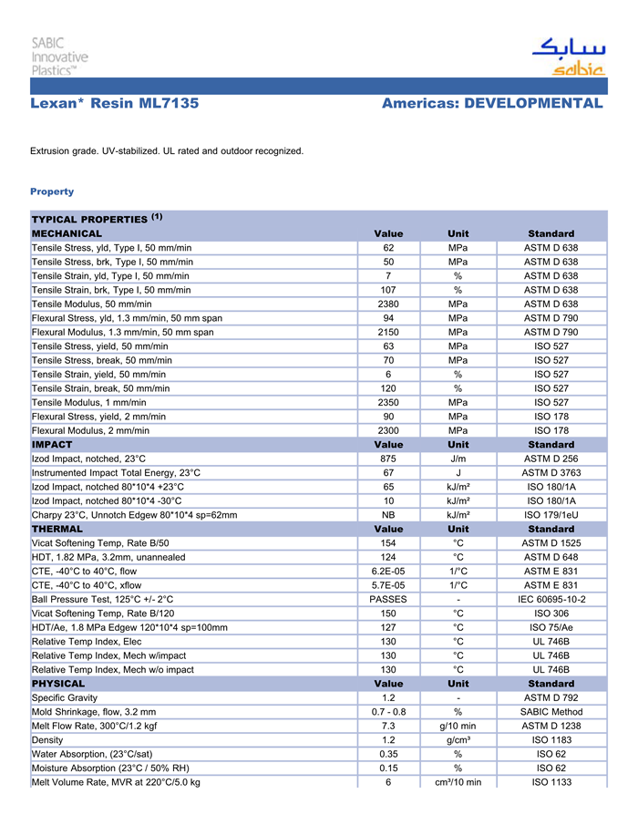 LEXAN PC ML7135物性表