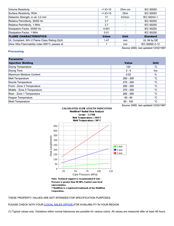 应用范围:产品描述LEXAN PC 223RH物性表LEXAN 223RH is a low viscosity, UV stabilized multi purpose grade, containing a release agent to ensure easy processing. This grade complies with Spanish regulations according UNE