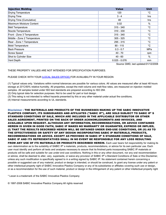 LEXAN PC ML7672物性表