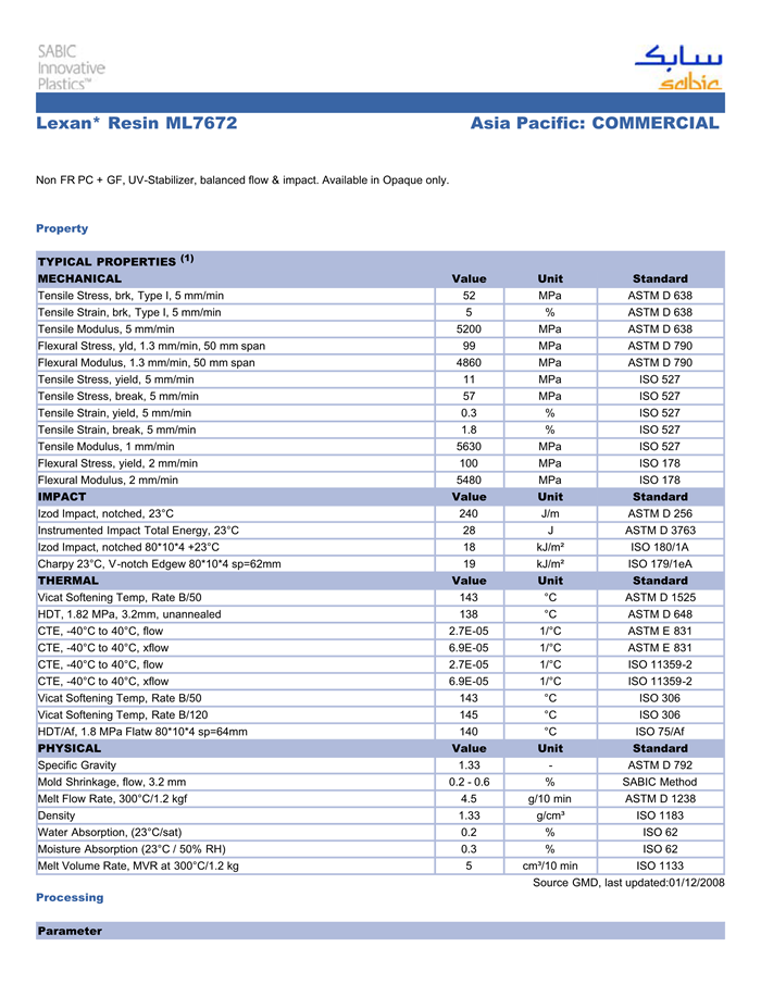 相关标签:Lexan PC 玻纤增强,LEXAN PC ML7672,