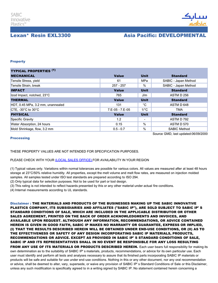 LEXAN PC EXL3300物性表