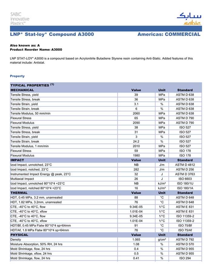 应用范围:产品描述LNP STATLOY A3000LTH物性表