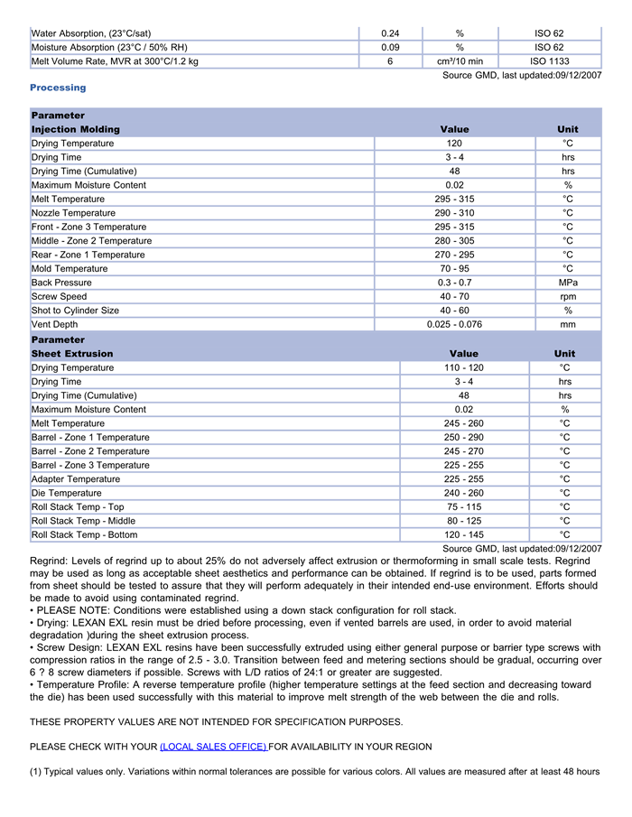 应用范围:产品描述LEXAN PC EXRL0232物性表Lexan* EXRL0232 polycarbonate (PC) siloxane copolymer resin is a developmental transparent extrusion grade for food contact applications for sheet extrusion. This resin offers