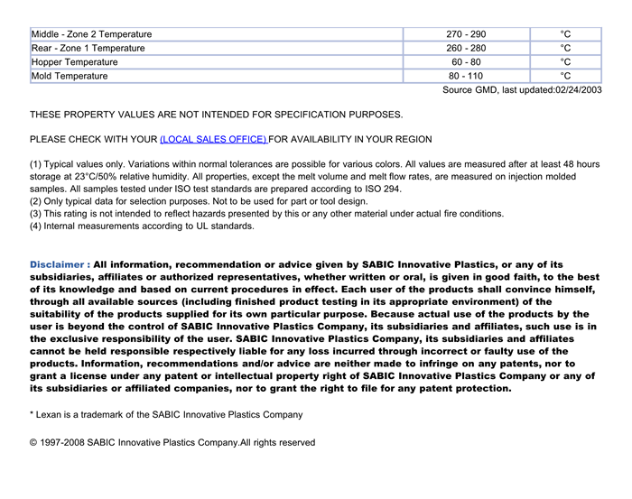 LEXAN PC ML3046物性表