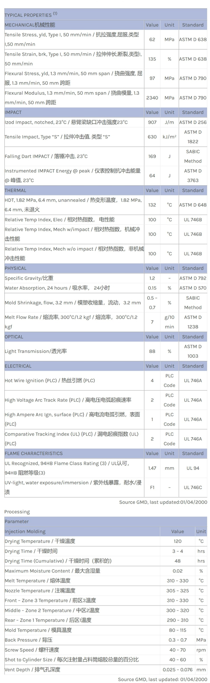 应用范围:产品描述LEXAN PC LS3物性表汽车镜用。高黏度、紫外稳定。与涂层粘合。仅有透明色。