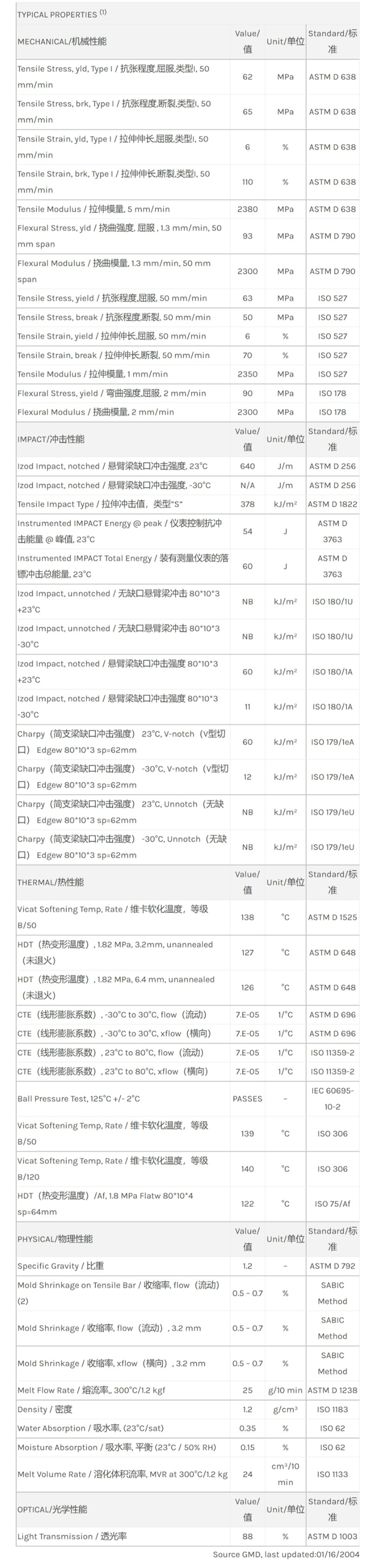 应用范围:产品描述Lexan PC LSHF物性表“Lexan LSHF resin是一种聚碳酸酯(PC)材料。加工:注射成型。重要属性有:高流动性热稳定剂紫外线稳定”Clear PolyCarbonate, High Flow, UV Stabilization, Heat StabilizationProperty/特性