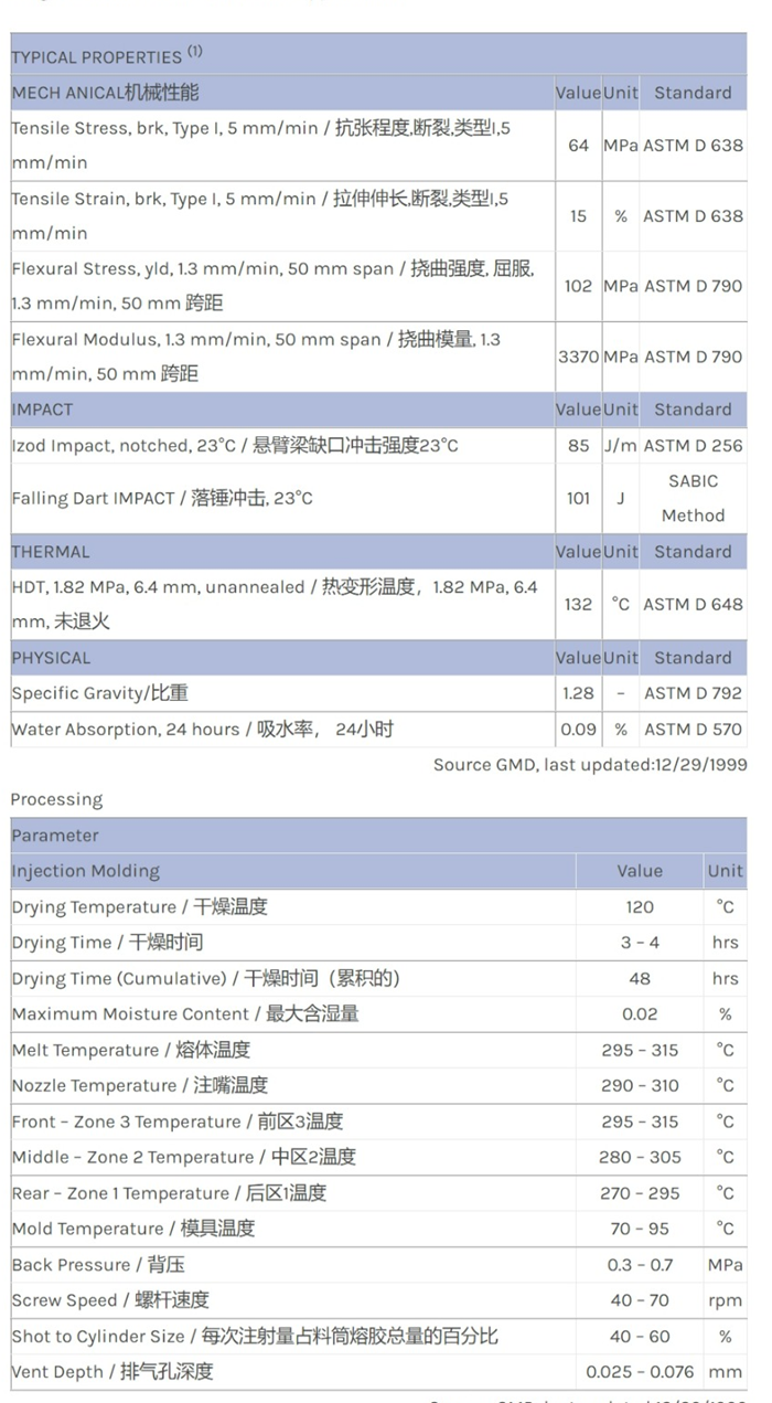 应用范围:产品描述LEXAN PC ML1913物性表9% glass-filled PC. For automotive applications.
