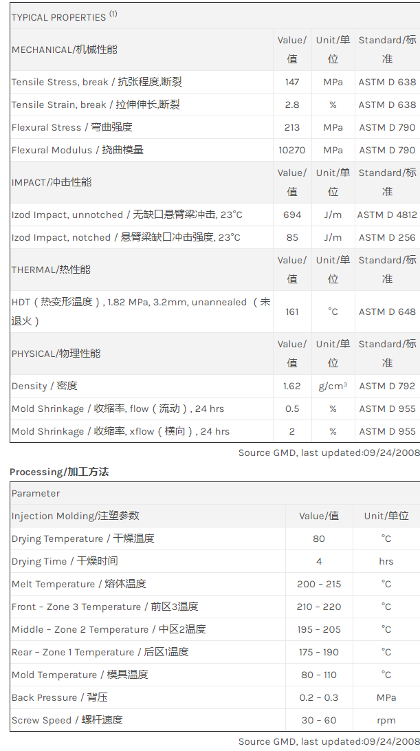 应用范围: 产品描述 LNP Thermocomp KF006物性表 “LNP THERMOCOMP KF006是一种聚甲醛(POM)共聚物产品,含有的填充物为30%玻璃纤维增强材料,可以通过注射成型进行加工。 主要特性为:化学耦合。” LNP* Thermocomp* KF006 is a compound based on Acetal Copolymer resin containing G