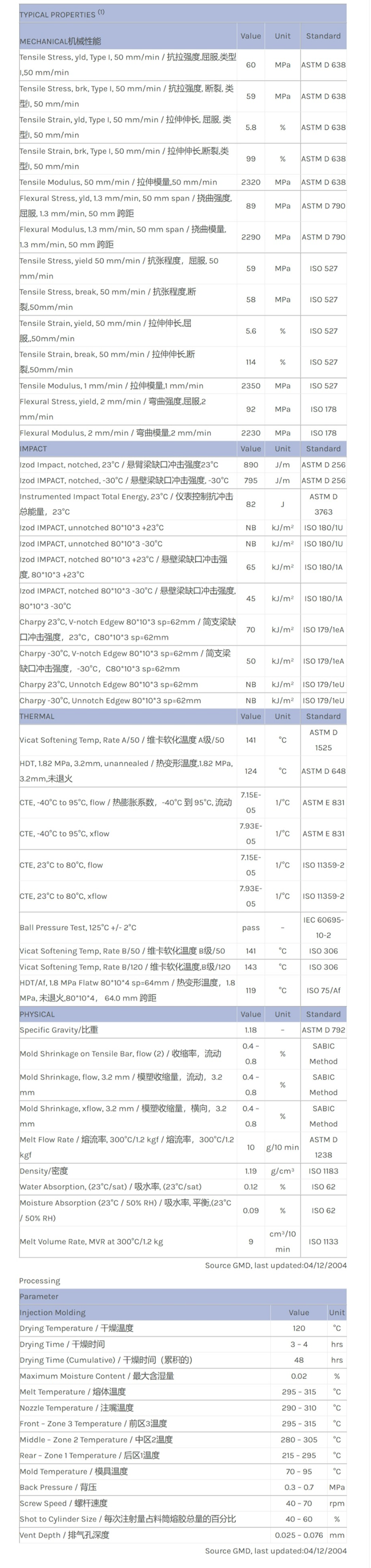 LEXAN PC FXD1433T物性表