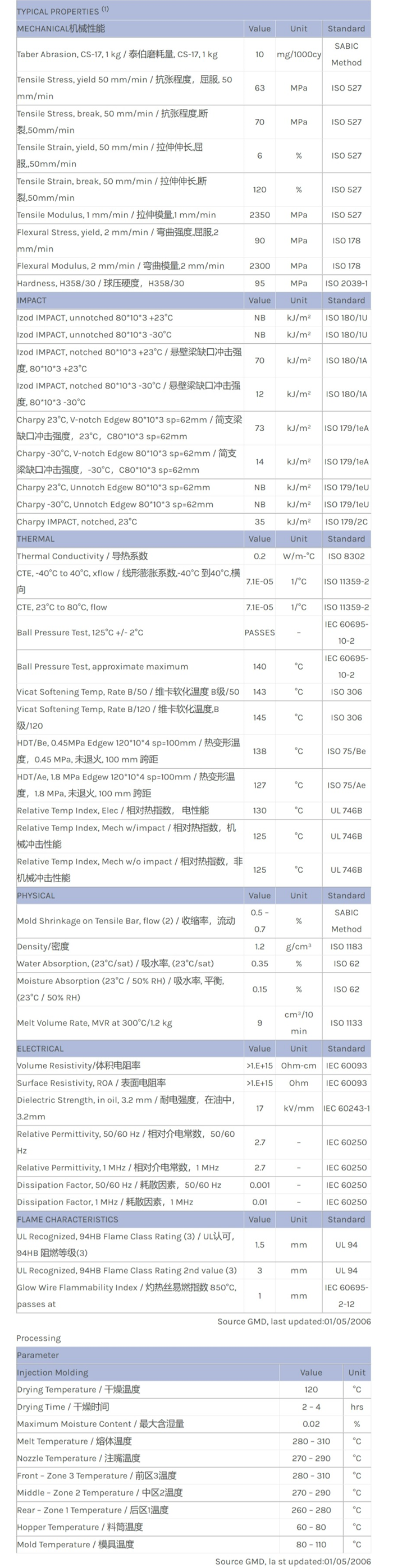 LEXAN PC FXD164R物性表