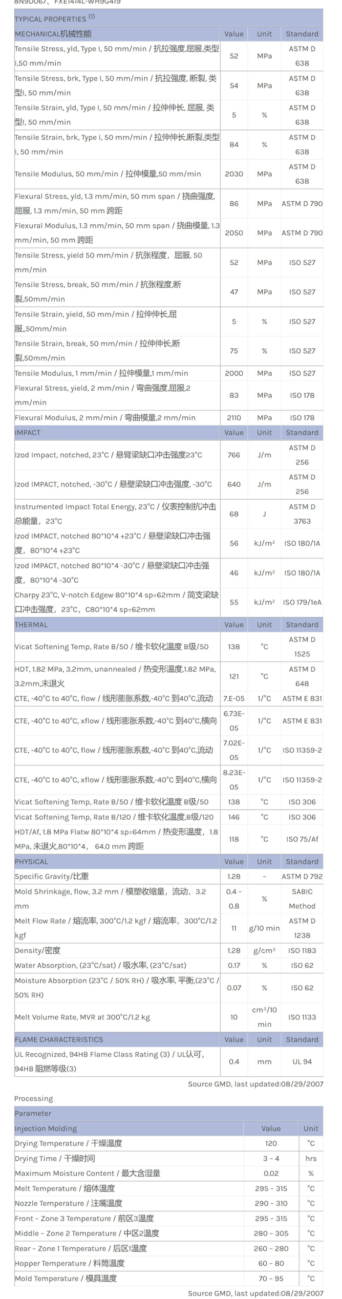 应用范围: 产品描述 LEXAN PC FXE1414L物性表 Lexan FXE1414L resin是一种聚碳酸酯(PC)产品,它可以通过注射成型进行加工。典型应用领域为:房屋。 特性包括: 阻燃/额定火焰 紫外线稳定 相关色号:FXE1414L-WH9D155、FXE1414L-WH9E445、FXE1414L-8R9D075、FXE1414L-WH9E515、FXE1414L-4B9D