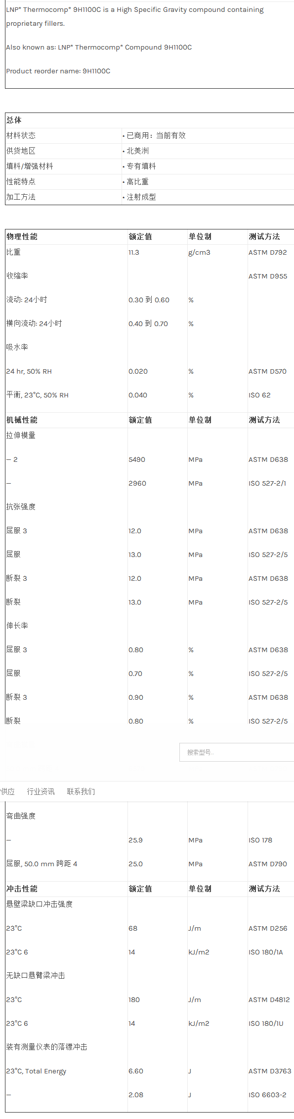 应用范围:产品描述LNP THERMOCOMP 9H1100C物性表