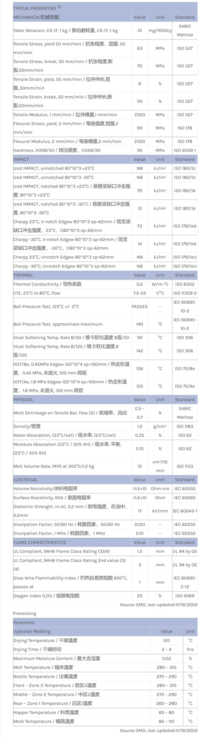 LEXAN PC FXE144R物性表