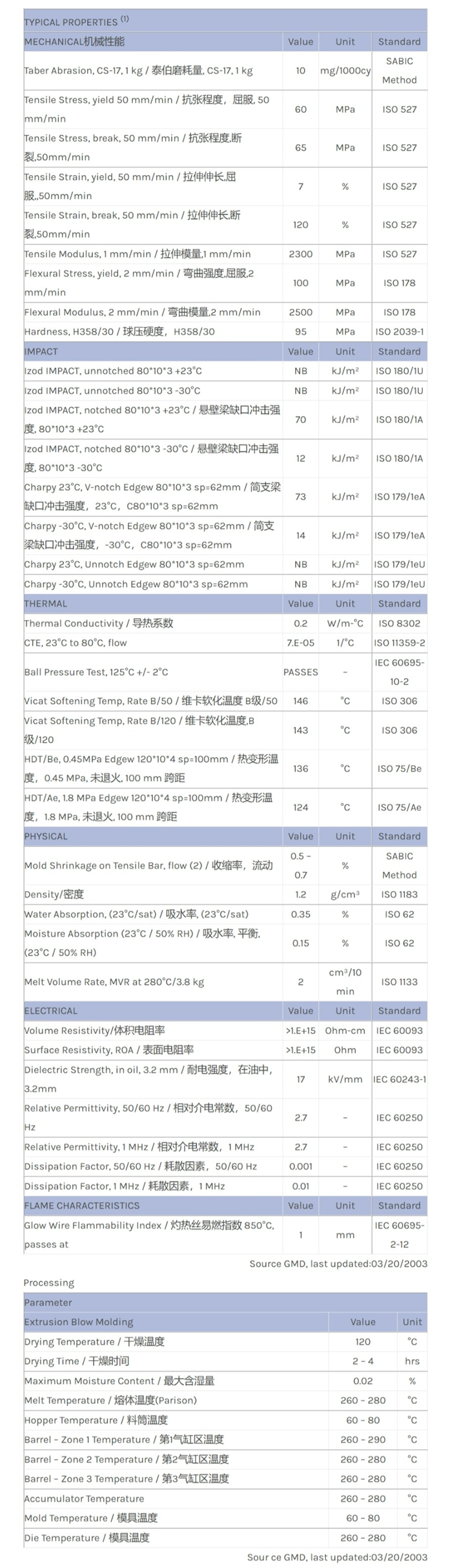 LEXAN PC FXE1643物性表