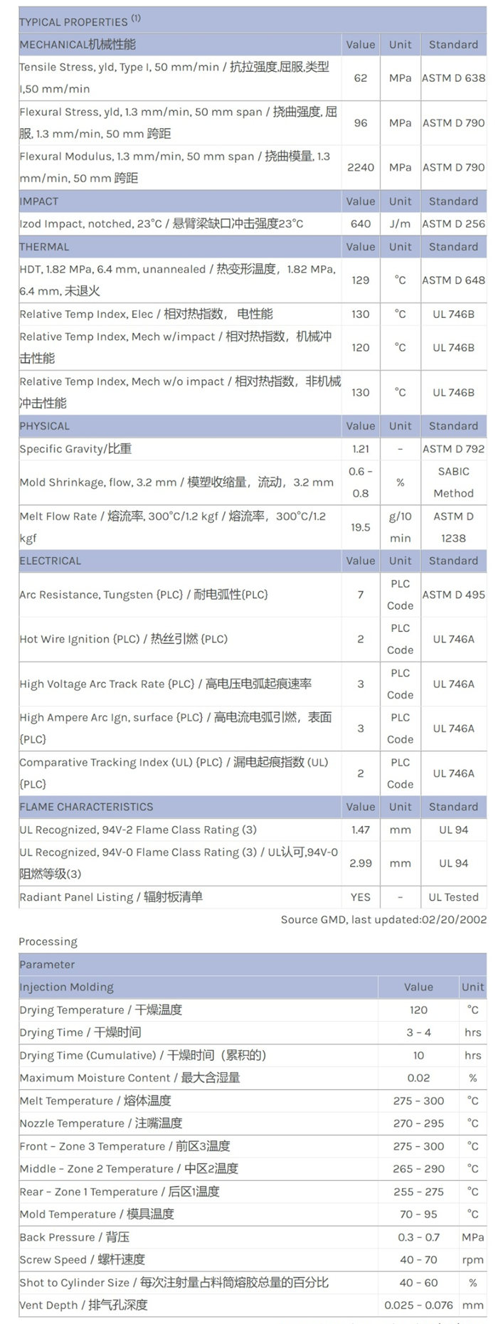 LEXAN PC FXE911A物性表