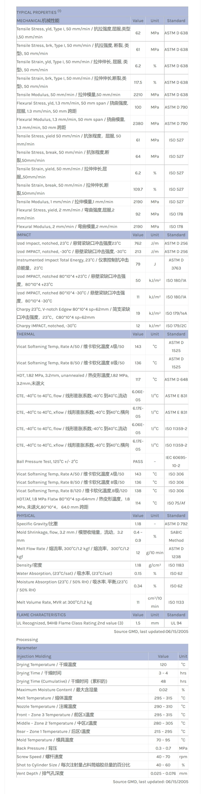 LEXAN PC FXP1430T物性表