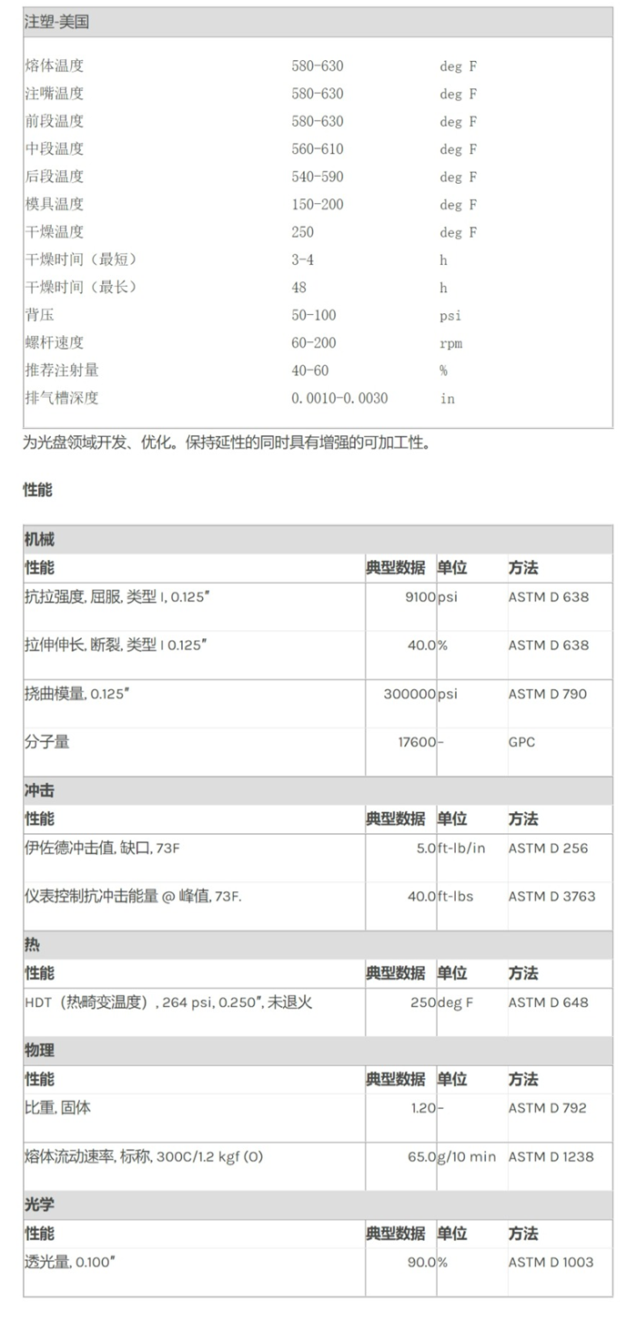 应用范围: 产品描述 Lexan PC OQ1020L物性表 为光盘领域开发、优化。保持延性的同时具有增强的可加工性。 加工