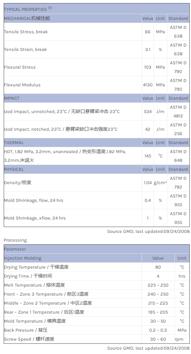 应用范围: 产品描述 LNP THERMOCOMP MX95319物性表 LNP THERMOCOMP MX95319是一种聚丙烯产品,含有的填充物为专有填料,可以通过注射成型进行加工。