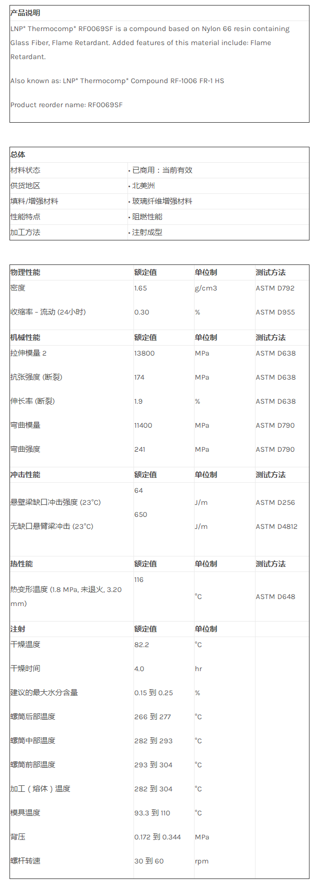 应用范围:产品描述LNP THERMOCOMP RF0069SF物性表