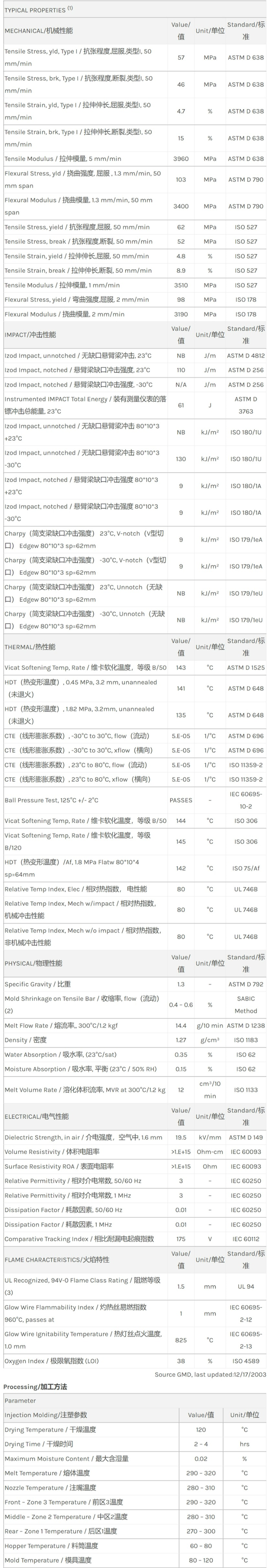 应用范围: 产品描述 Lexan PC BFL2010物性表 无溴无氯阻燃PC 。 10 %玻璃纤维增强与改善的流动速率。不透明的颜色。 相关颜色色号:BFL2010-WH5G023、BFL2010-BK1066、BFL2010-WH8A322 Non-brominated, non-chlorinated flame retardant, glass reinforced PC with imp