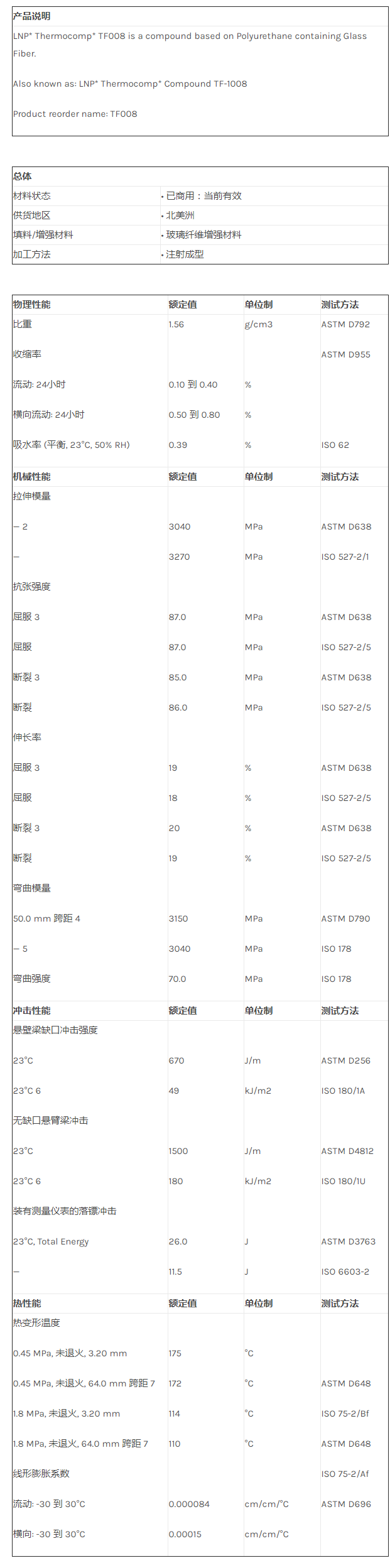 应用范围: 产品描述 LNP THERMOCOMP TF008物性表