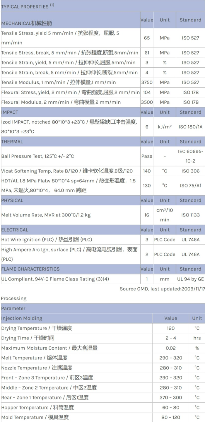 应用范围: 产品描述 LEXAN PC EXRL0720物性表 Glassfiber reinforced, Flame retardant Polycarbonate (V0/1mm) using Non-Brominated & Non-Chlorinated Flame Retardants. Meets UL 508 at 1mm.