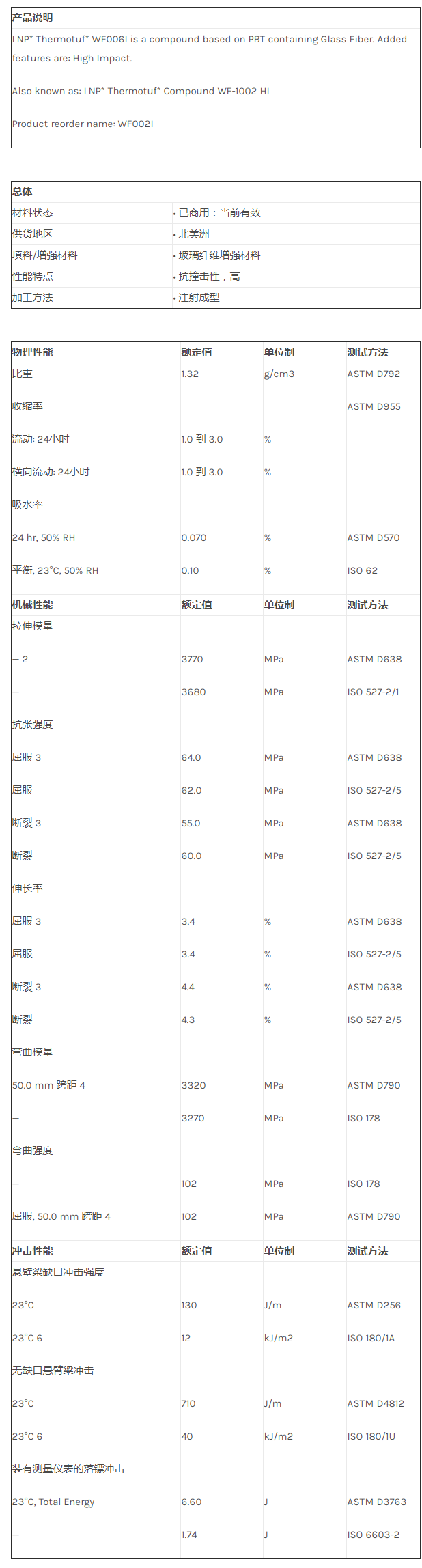 应用范围: 产品描述 LNP THERMOCOMP WF002I物性表