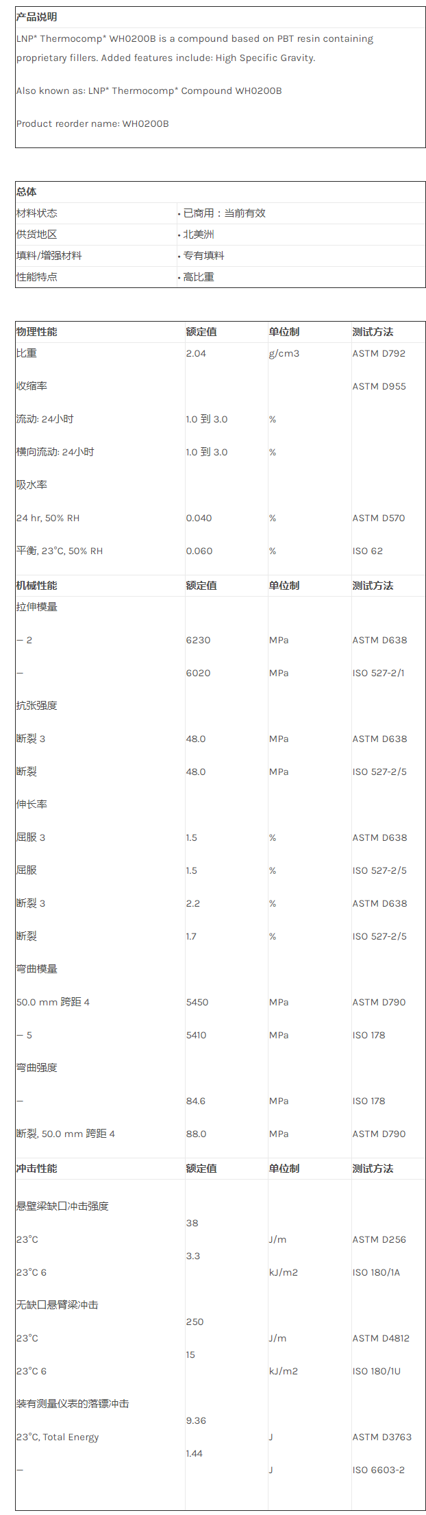应用范围:产品描述LNP THERMOCOMP WH0200B物性表