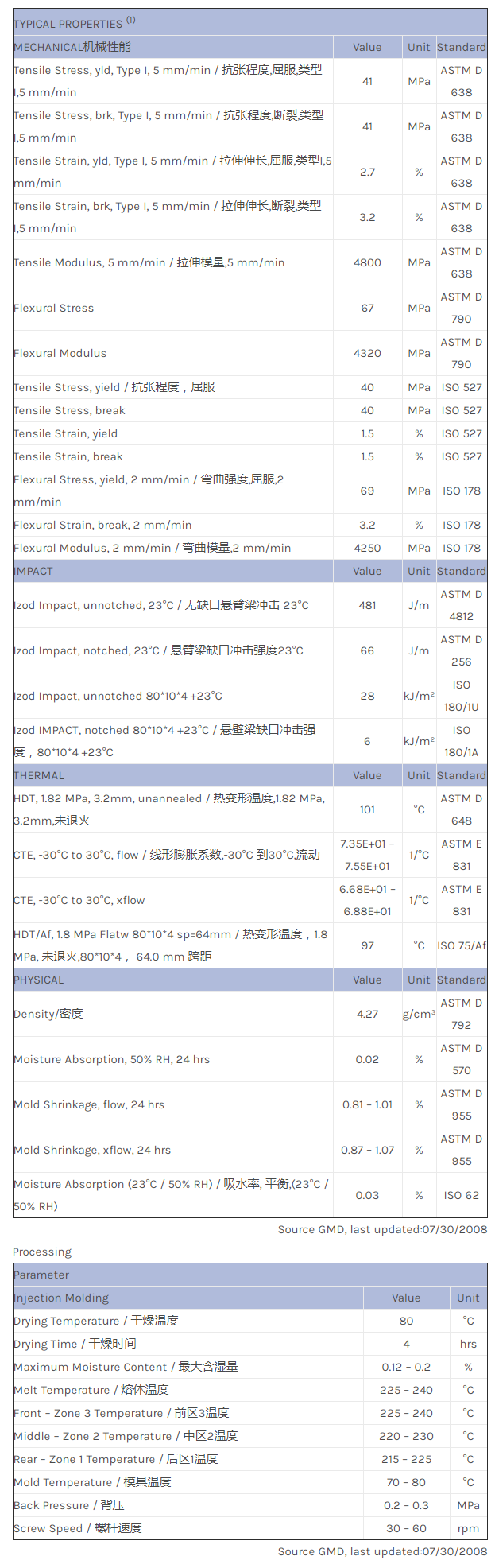 应用范围:产品描述LNP THERMOCOMP SH0430AC_BK1D466物性表4.3 Specific Gravity/比重 nylon 12, clean compound system