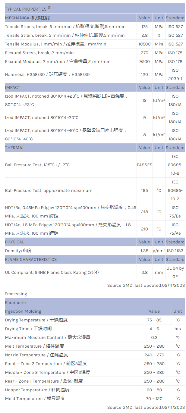 应用范围:产品描述LNP THERMOCOMP EXCP0194物性表35% glass reinforced PA6 injection moulding resin with high flow and excellent stiffness.