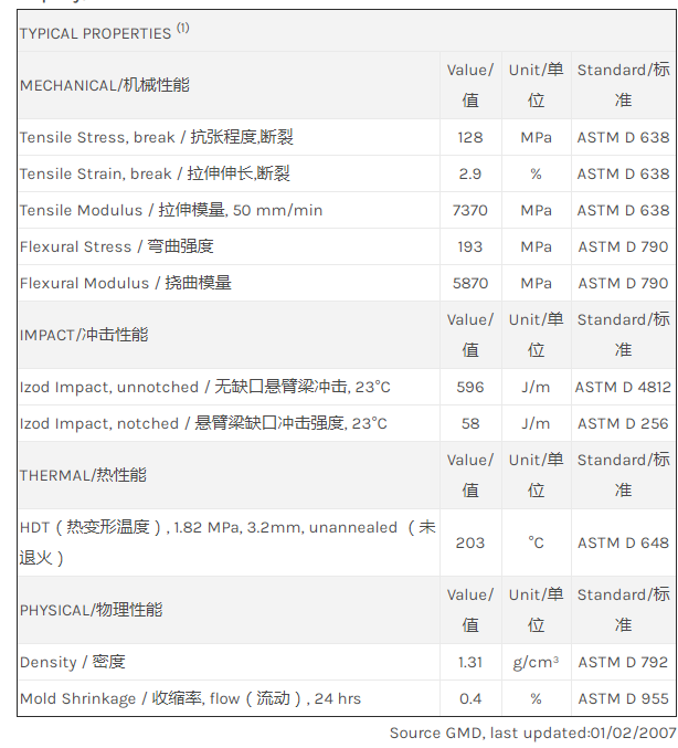 应用范围: 产品描述 LNP Thermocomp PF004S物性表 “LNP THERMOCOMP PF004S是一种聚酰胺6(尼龙6)材料,含有的填充物为玻璃纤维增强材料。 LNP THERMOCOMP PF004S的主要特性为:热稳定剂。” LNP* Thermocomp* PF004S is a compound based on Nylon 6 resin containing Gla