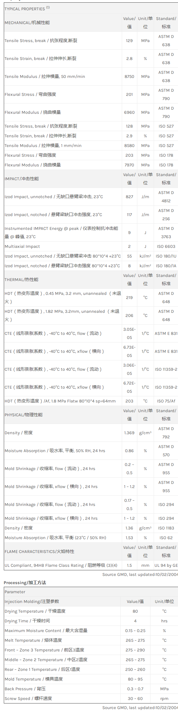 应用范围: 产品描述 LNP Thermocomp PF006物性表 “LNP THERMOCOMP PF006是一种聚酰胺6(尼龙6)产品,含有的填充物为30%玻璃纤维增强材料,可以通过注射成型进行加工。 主要特性为:阻燃/额定火焰。” LNP THERMOCOMP* PF006 is a compound based on Nylon 6 resin containing Glass Fibe