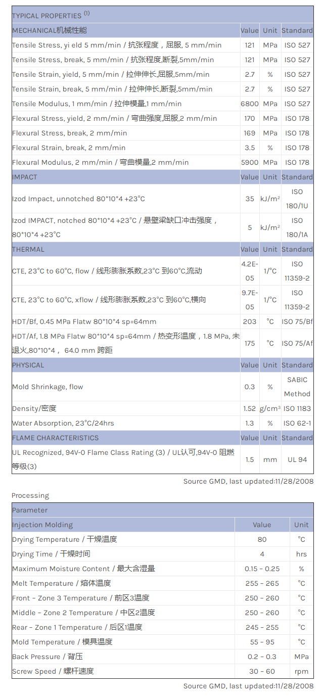 应用范围: 产品描述 LNP THERMOCOMP PFB139E物性表 LNP* THERMOCOMP* PFB139E is a compound based on PA 6 resin containing Glass Fiber, Glass Bead, Flame Retardant. Added features include; Flame Retardant, Easy Molding