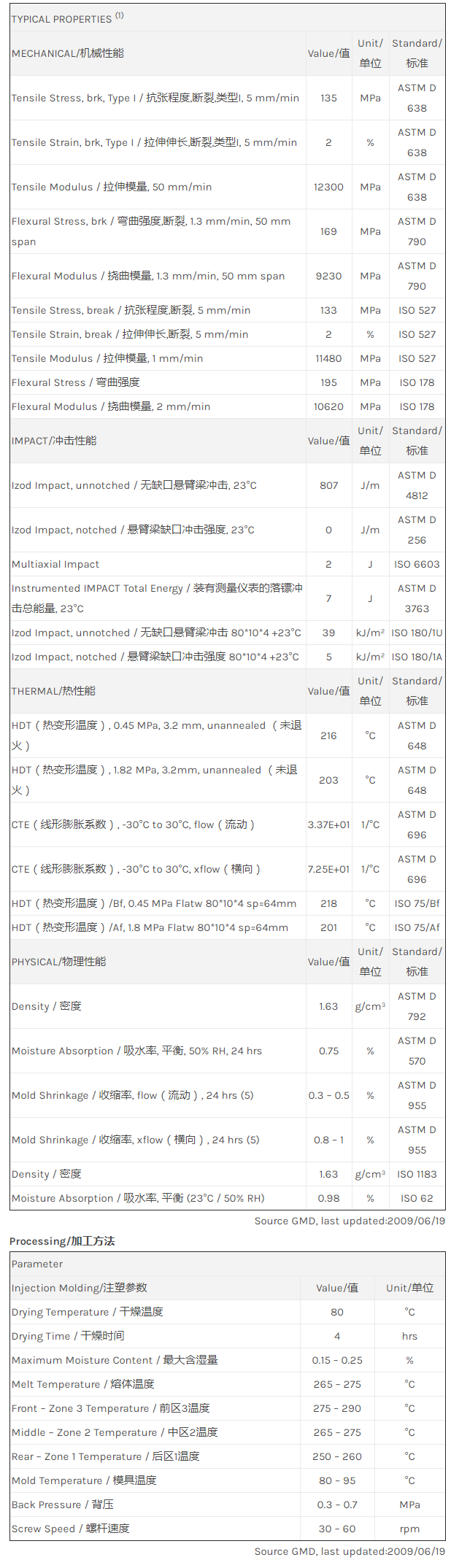 应用范围: 产品描述 LNP Thermocomp PFW64物性表 LNP THERMOCOMP PFW64是一种聚酰胺6(尼龙6)产品,含有的填充物为20%玻璃纤维增强材料和30%硅灰石 (casio3),可以通过注射成型进行加工。 LNP* Thermocomp* PFW64 is a compound based on Nylon 6 resin containing Glass Fiber