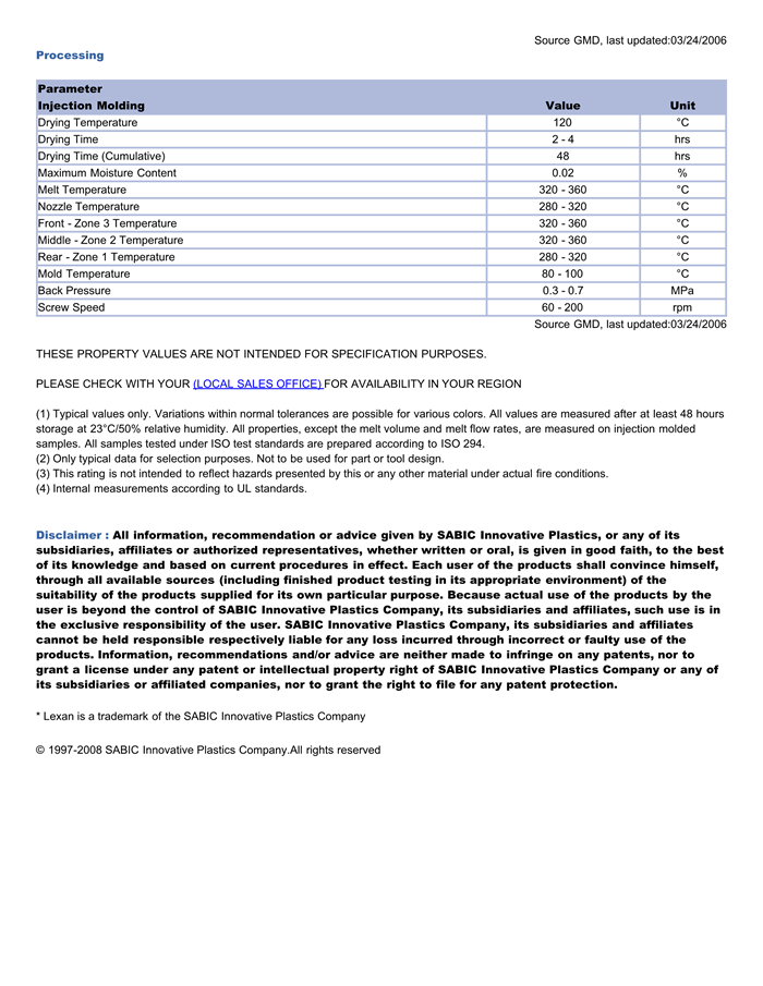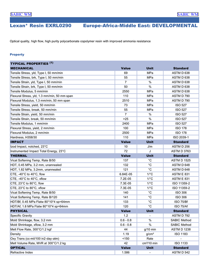 LEXAN PC EXRL0290物性表