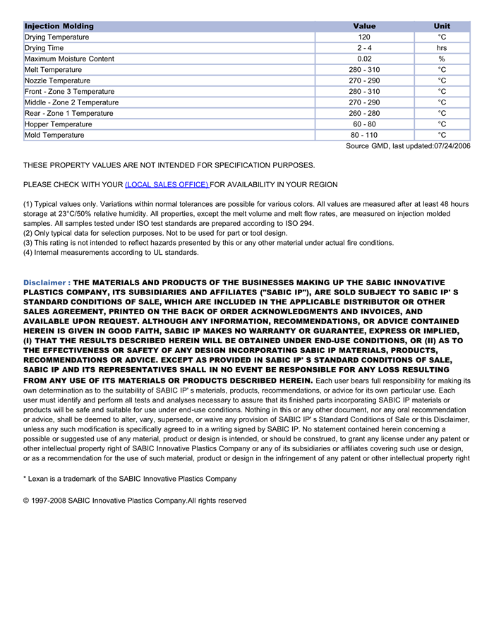 LEXAN PC EXRL0332物性表